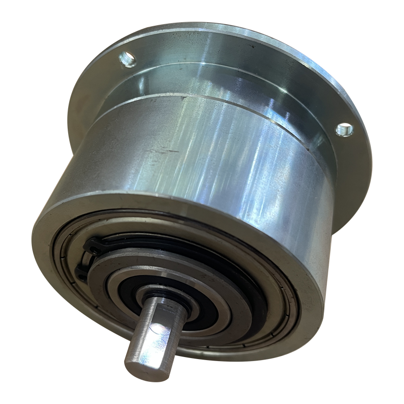 磁粉離合器切斷電流時(shí):磁通隨激磁電流的消失而消失,磁粉在重力作用下又重新處于松散狀態(tài),并在離心力作用下,被甩在主動(dòng)轉(zhuǎn)子內(nèi)壁上,磁粉離合器再次處于分離狀態(tài)。有電流通過(guò)時(shí):磁輥中產(chǎn)生工作磁通,工作腔內(nèi)的磁粉沿磁通方向呈鏈狀連接起來(lái)形成磁粉鏈,磁粉離合器就是靠此時(shí)磁粉與磁粉、磁粉與工作面間的摩擦力和磁粉鏈間的抗剪力來(lái)傳遞轉(zhuǎn)矩,磁粉離合器處于結(jié)合狀態(tài)。
