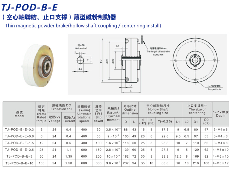 下圖就是關于超薄型空心磁粉制動器剎車器選型參數(shù):