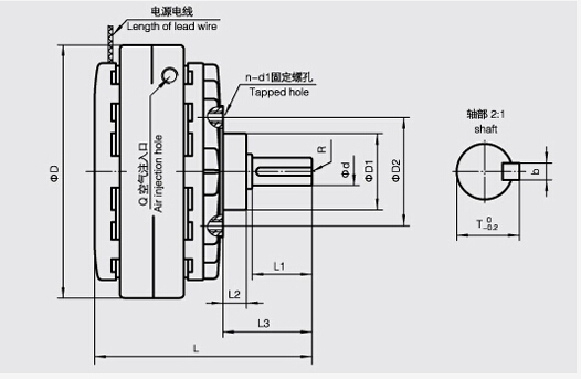 POD型磁粉制動(dòng)器與磁粉離合器的原理相同,只要磁粉離合器的從動(dòng)轉(zhuǎn)子加以固定,就形成了磁粉制動(dòng)器。