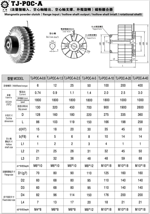 而內(nèi)空心軸磁粉離合器的規(guī)格有: